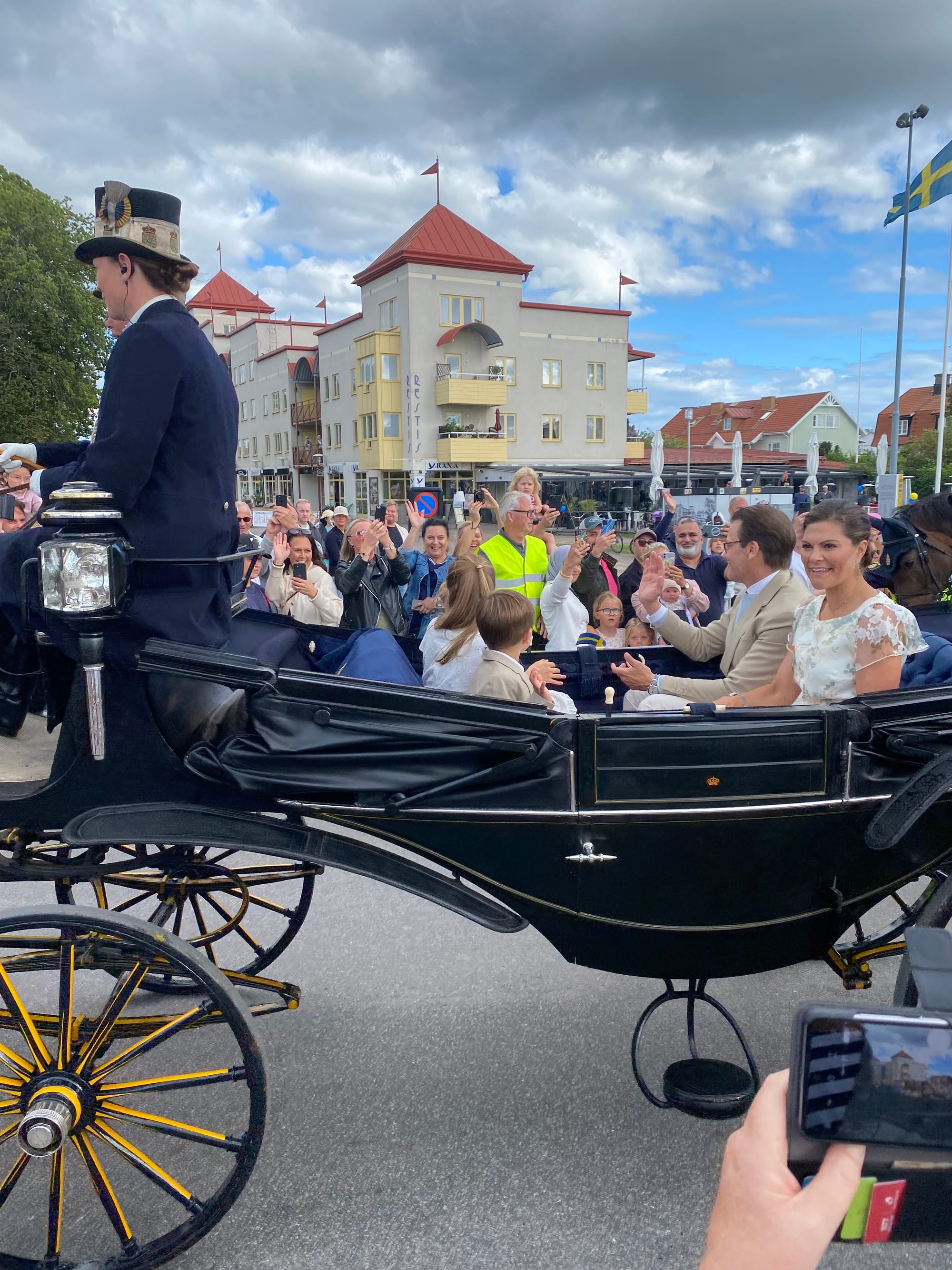 Idag hade vi planerat att lämna Borgholm men vädret tyckte annorlunda. Efter en blåsig natt, ca 12 m/s låg vågorna kvar över Kalmarsund och den kraftiga vinden fortsatte…och åter igen mot färdriktning ???? vi fick vi snällt stanna kvar. Det visade sig att det var Viktorias födelsedag…Borgholm fylldes av firande människor. Tydligen betyder Viktoriadagarna jättemycket för handlarna i staden. Vi var på plats när de för första gången åkte häst och vagn genom Borgholm, ändå fint ????