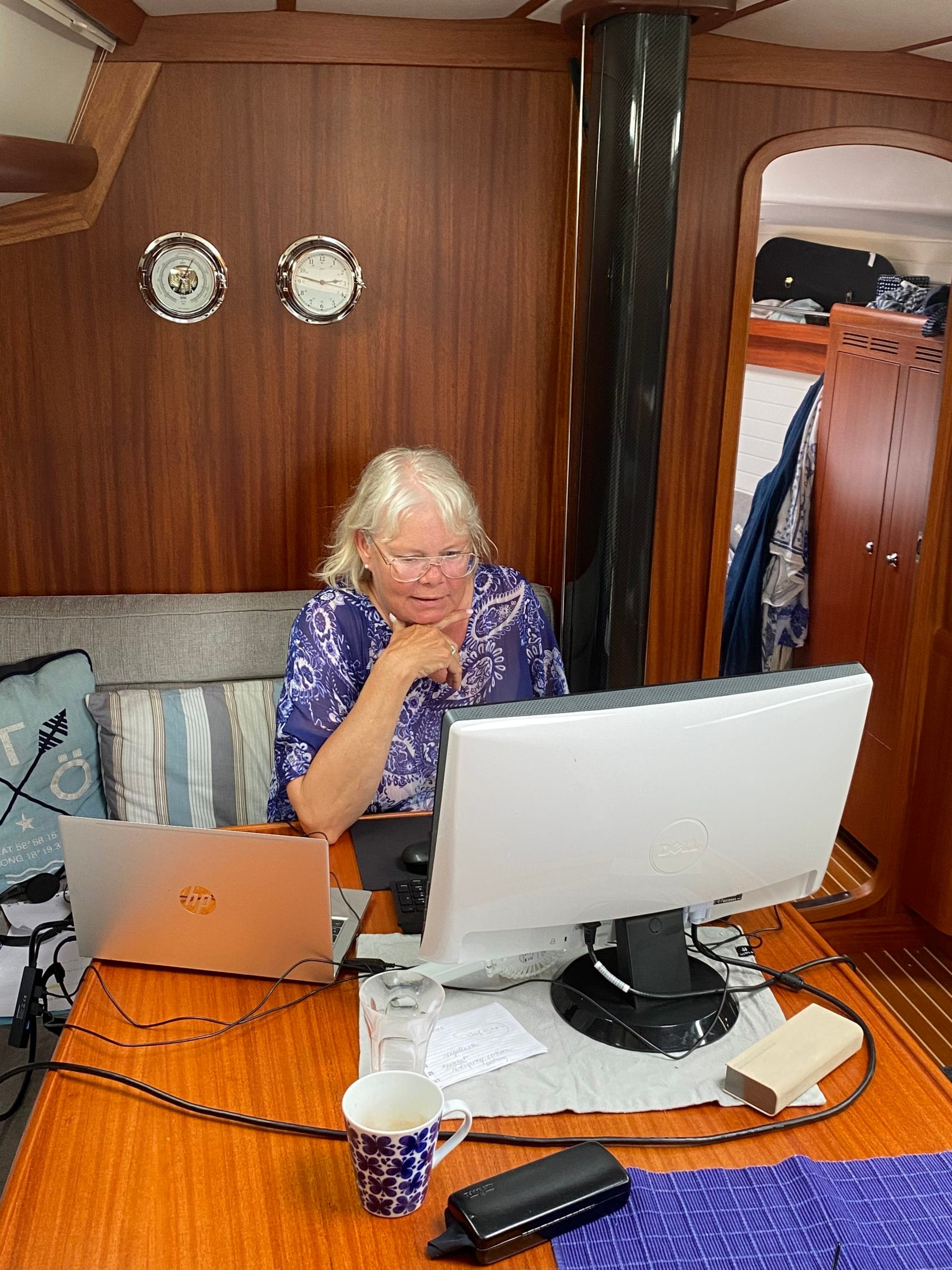 Idag var planen att segla vidare men jobbet ville något annat, jag fick öppna Qurantfilial i båten.
