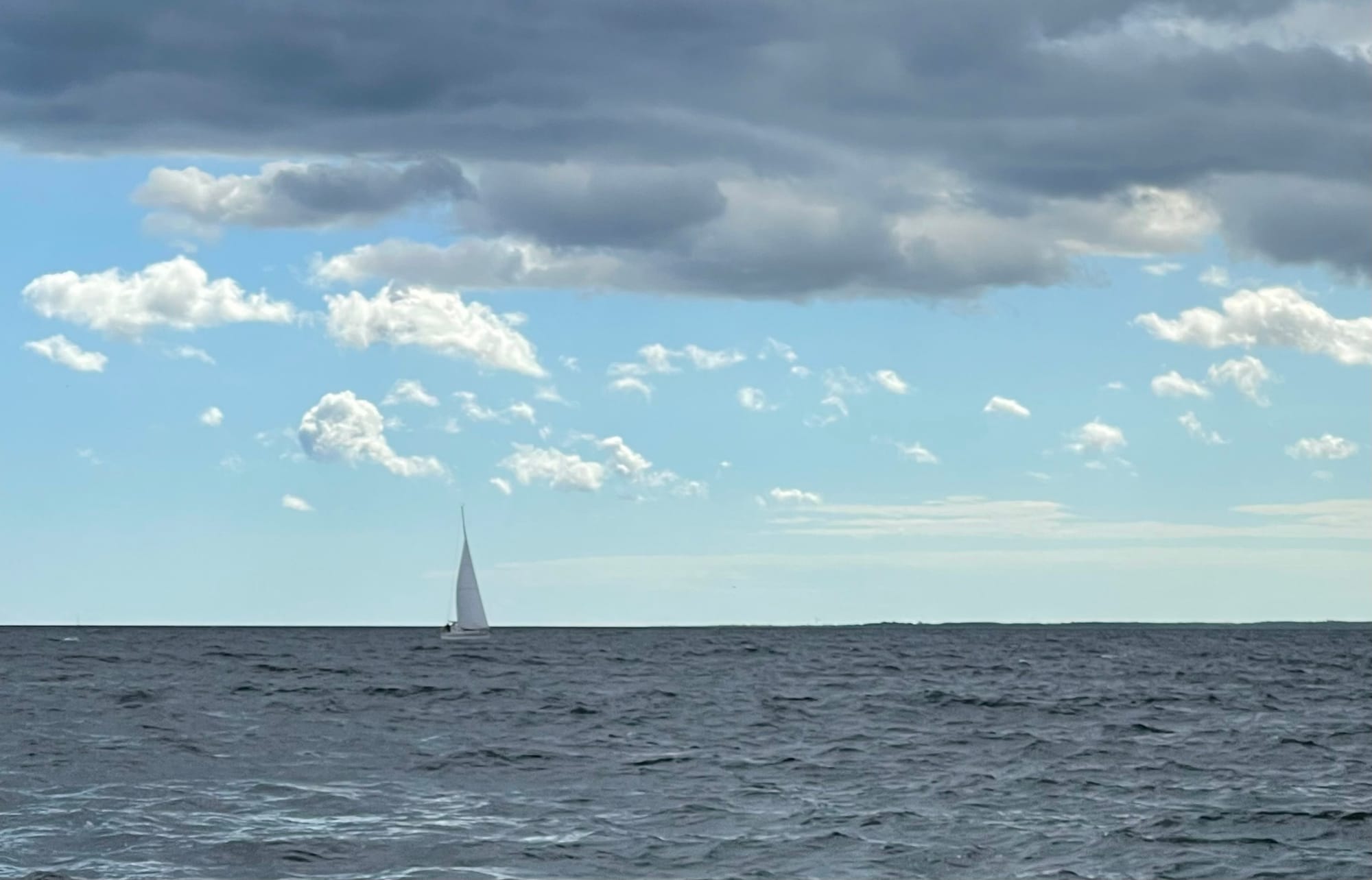 Vi får följa naturens nycker helt enkelt…vi vänder mot Kalmar. Så istället får vi toppenvind och en fin segling upp hit där vi lagt till nu. Vi möttes av fula moln på vägen.