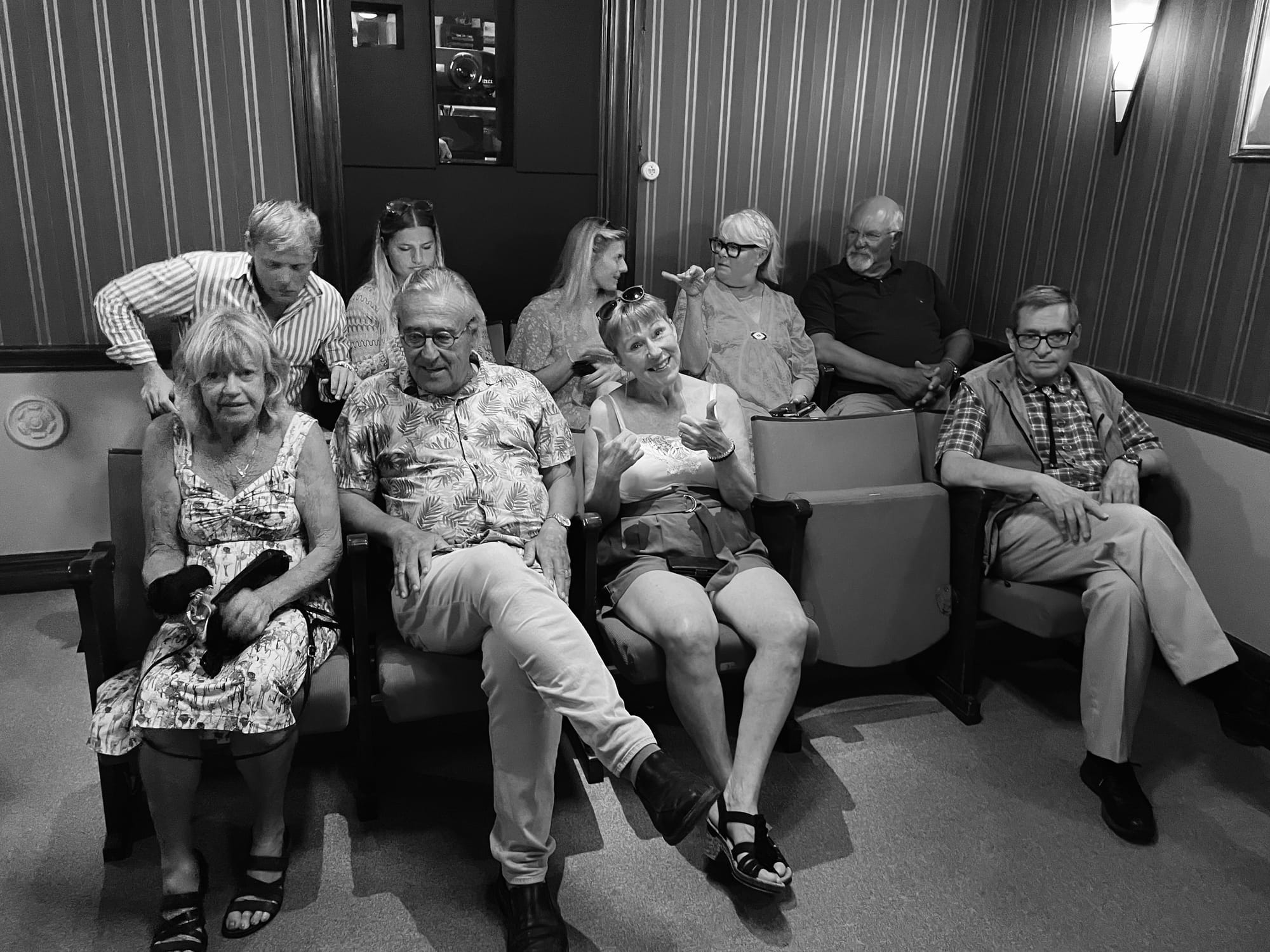 Förresten vi var inte klara med Karlskrona riktigt…vi var ju på kalas hos Carina som fyllde år i söndags. Nu kan vi visa både en bild på oss och en på den lilla biografen som Anders har i sitt hem.