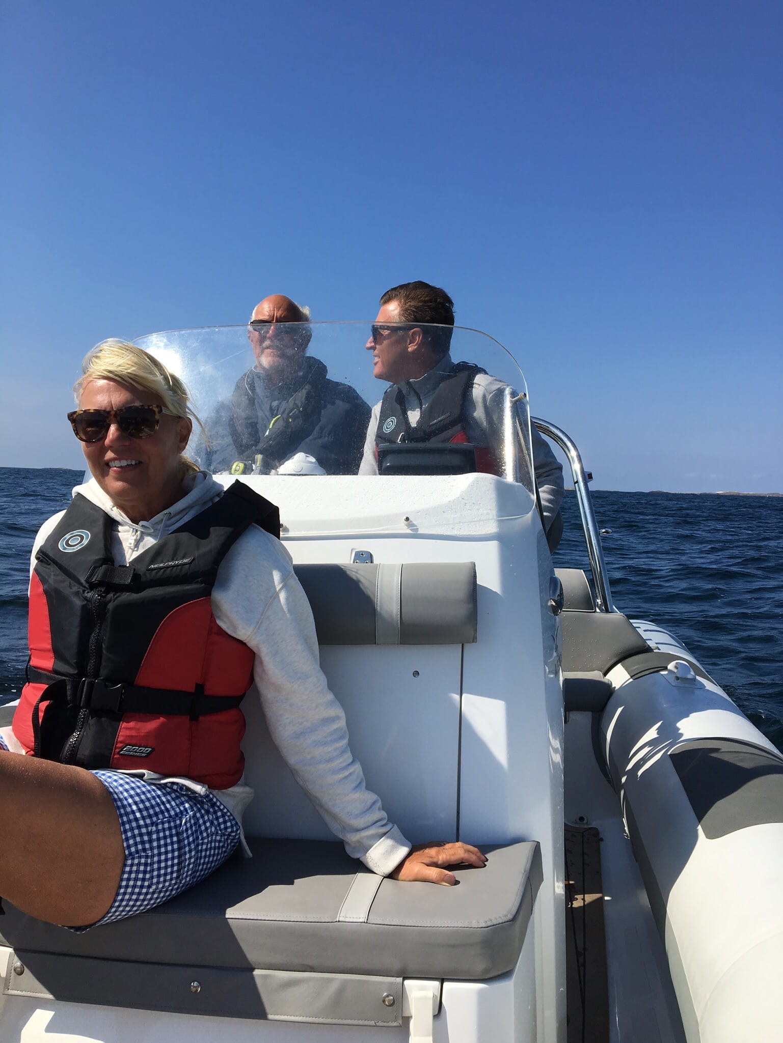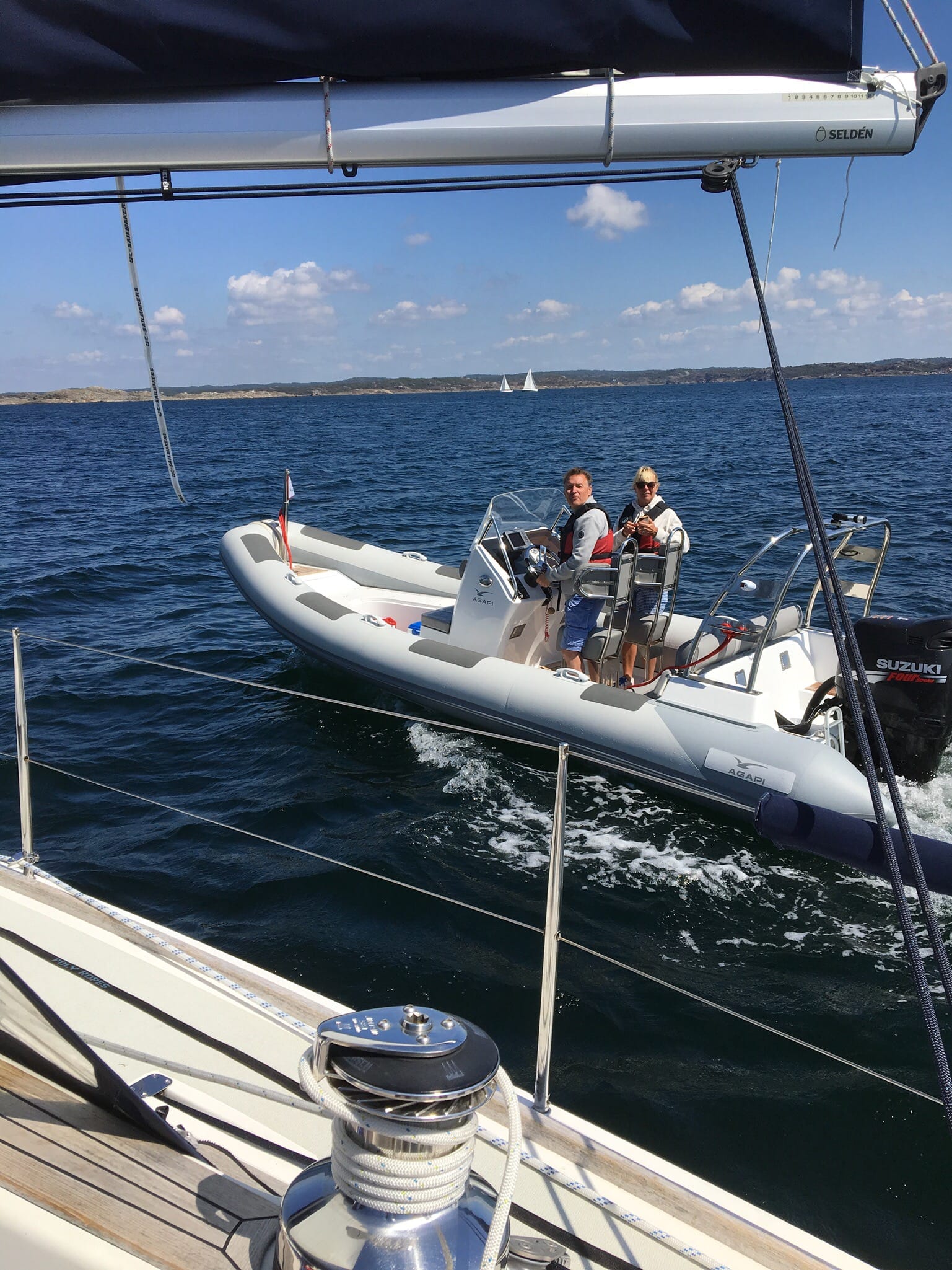När vi var en bit söder om målet kom Lella och Per (Tommys syster med man) och mötte oss med sin ribbåt så vi hade lots in i det trånga sundet ????