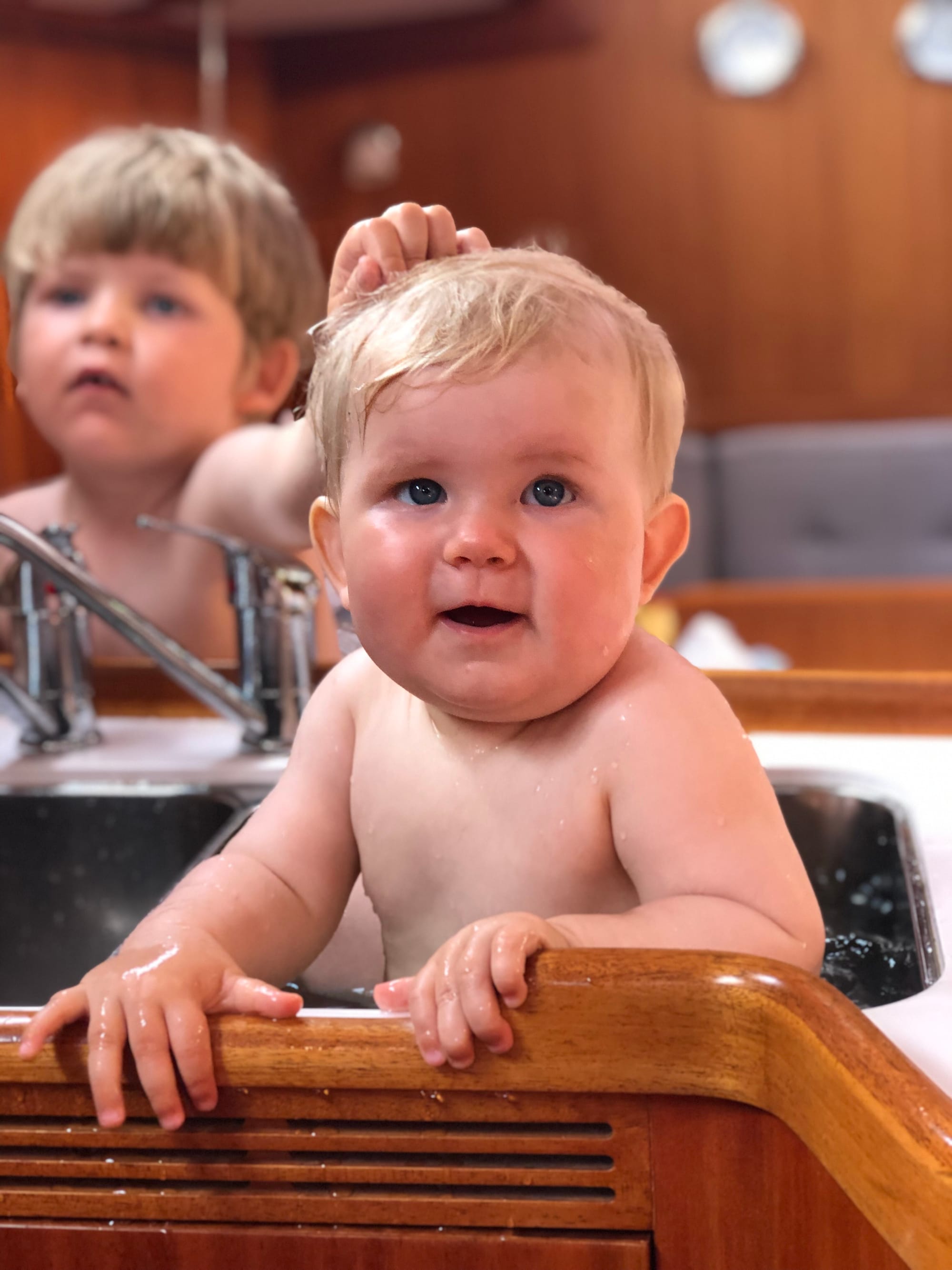Bea fick som alla tidigare barnbarn då de innehaft lämplig storlek bada i diskhon (inte Leo tyvärr för han var lite för stor vid premiären). Det uppskattades ????????♀️