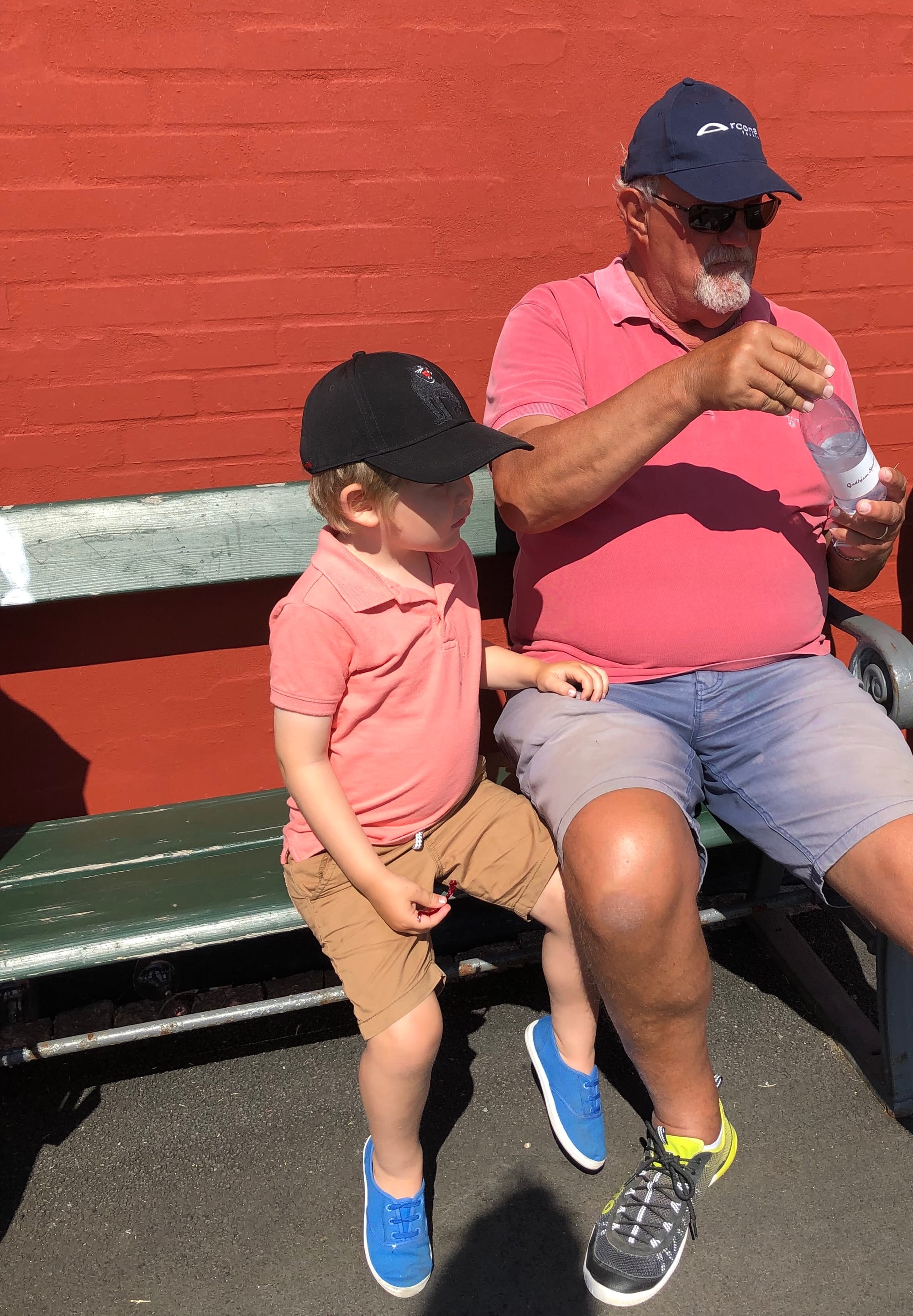 Där blev det en glass i skuggan och en liten vandring ut på stenstranden.