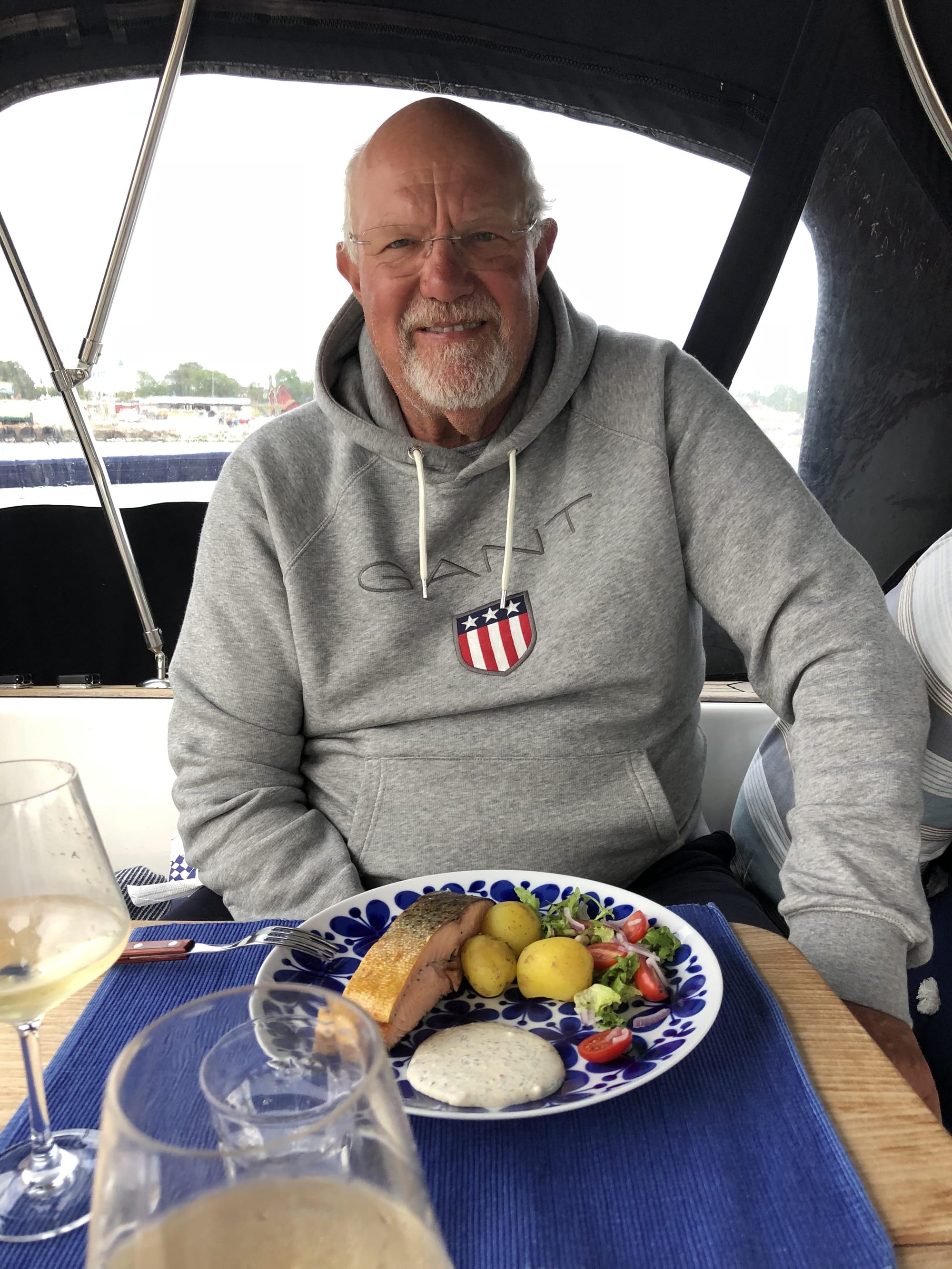 Jag måste berätta en rolig episod när Bosse med familj seglade med oss: Tommy har i sommar skrapat och slagit huvudet i båttaket åtskilliga gånger och det har resulterat i att han har ett antal ärr på flinten och oftast nåt färskt sår. (Jag vet inte om T tror att han blivit kortare på sista tiden) .Det här uppfattade Bo och Tommy skojade med honom och sa att farmor slagit honom med brödkaveln. Någon dag senare säger Bosse till mig: "Farmor, när vi kommer till er och ska baka, tex i jul så får du vara försiktig med brödkaveln..."