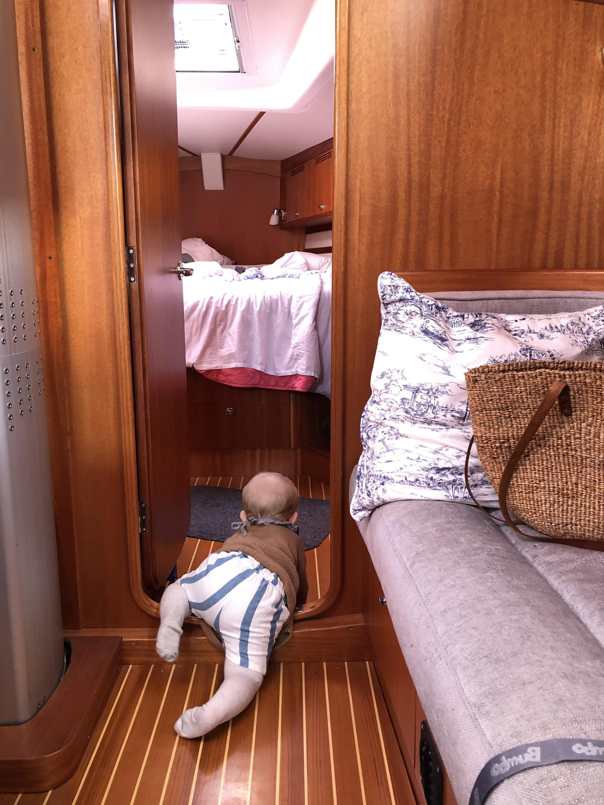 En som verkligen trivs på båten är premiärseglaren Bea som rensar golvet från mumsiga dammtussar och annat...