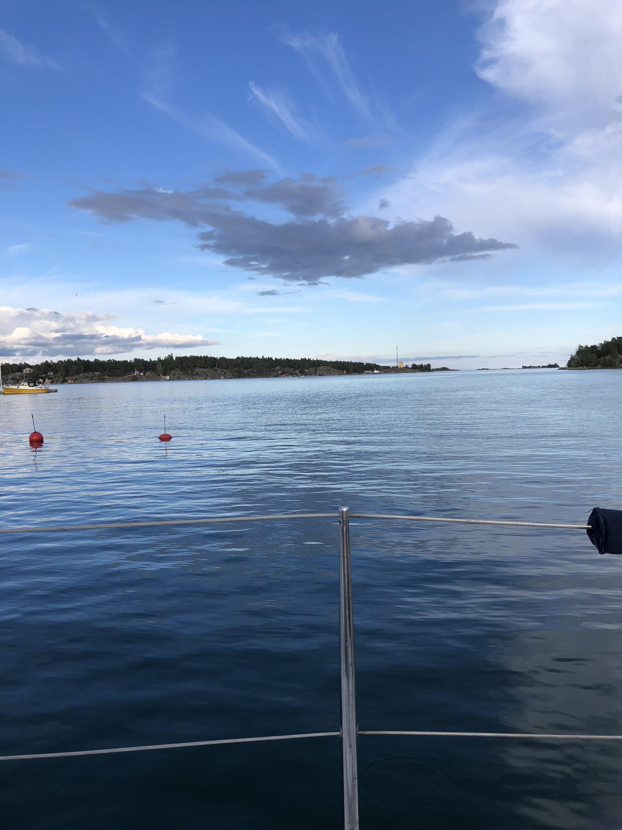 Vacker kväll och lugnt vatten när vi kröp ner i våra kojer, godnatt från s/y hav med besättning!
