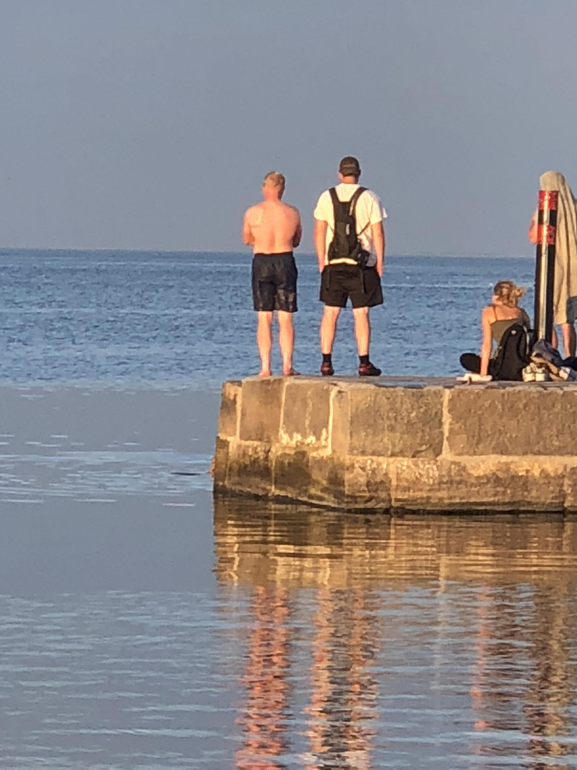 Magisk utsikt och coola gänget hoppar från kajen.