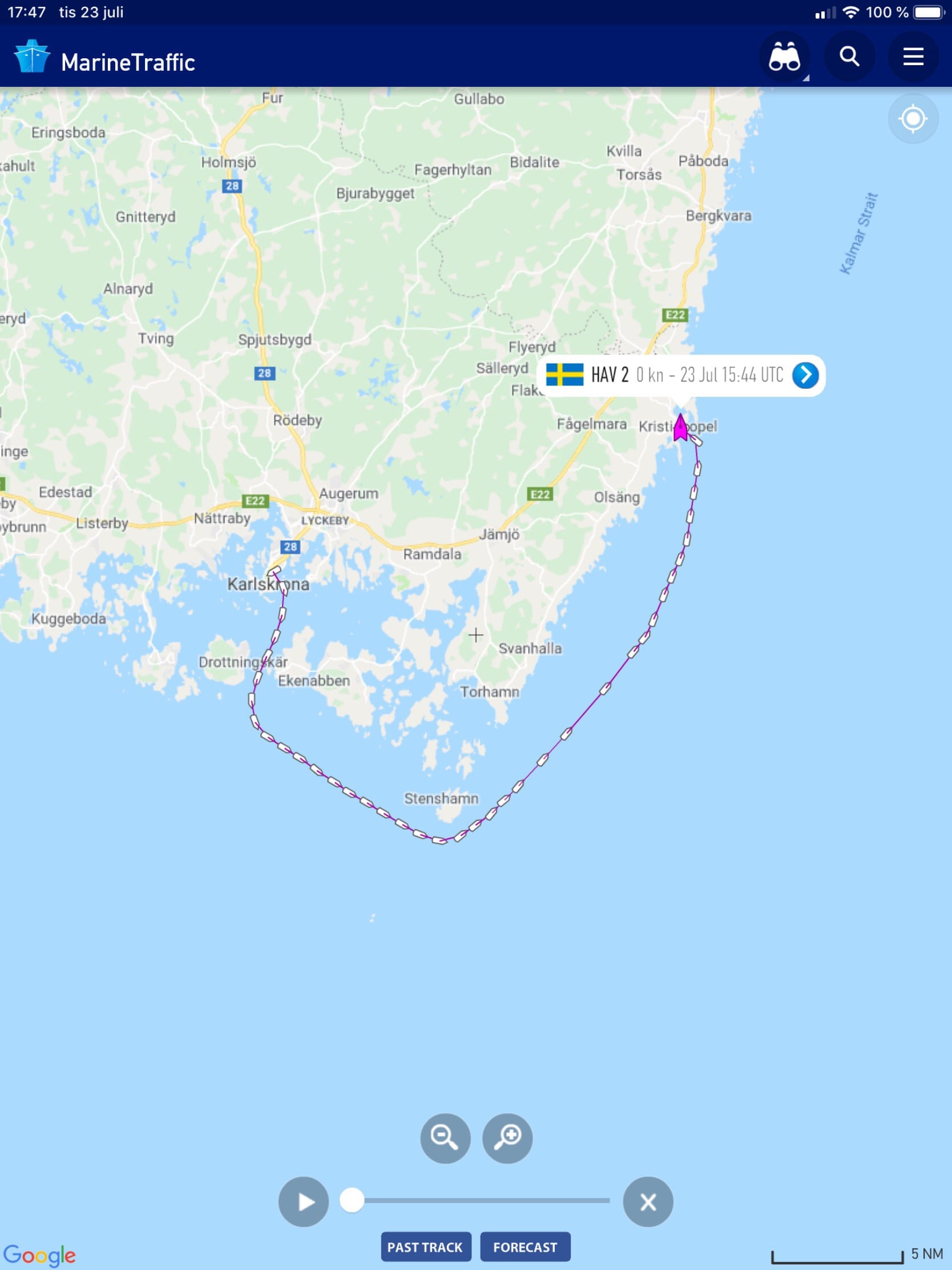 Mot Bornholm, tisdag 23 juli