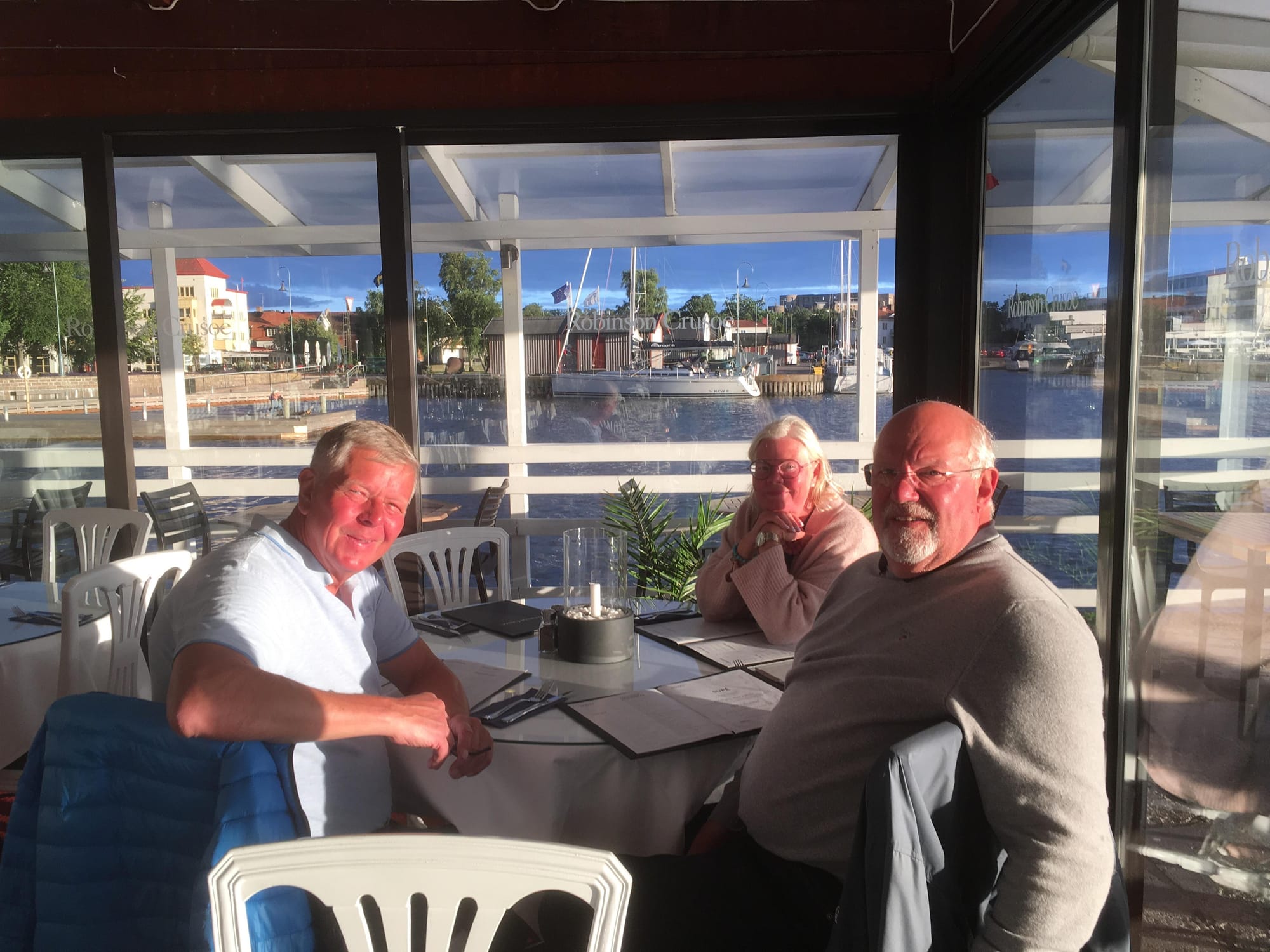 Avslutade i med sol och middag intill hamnen i Borgholm, i bakgrunden syns vår båt.