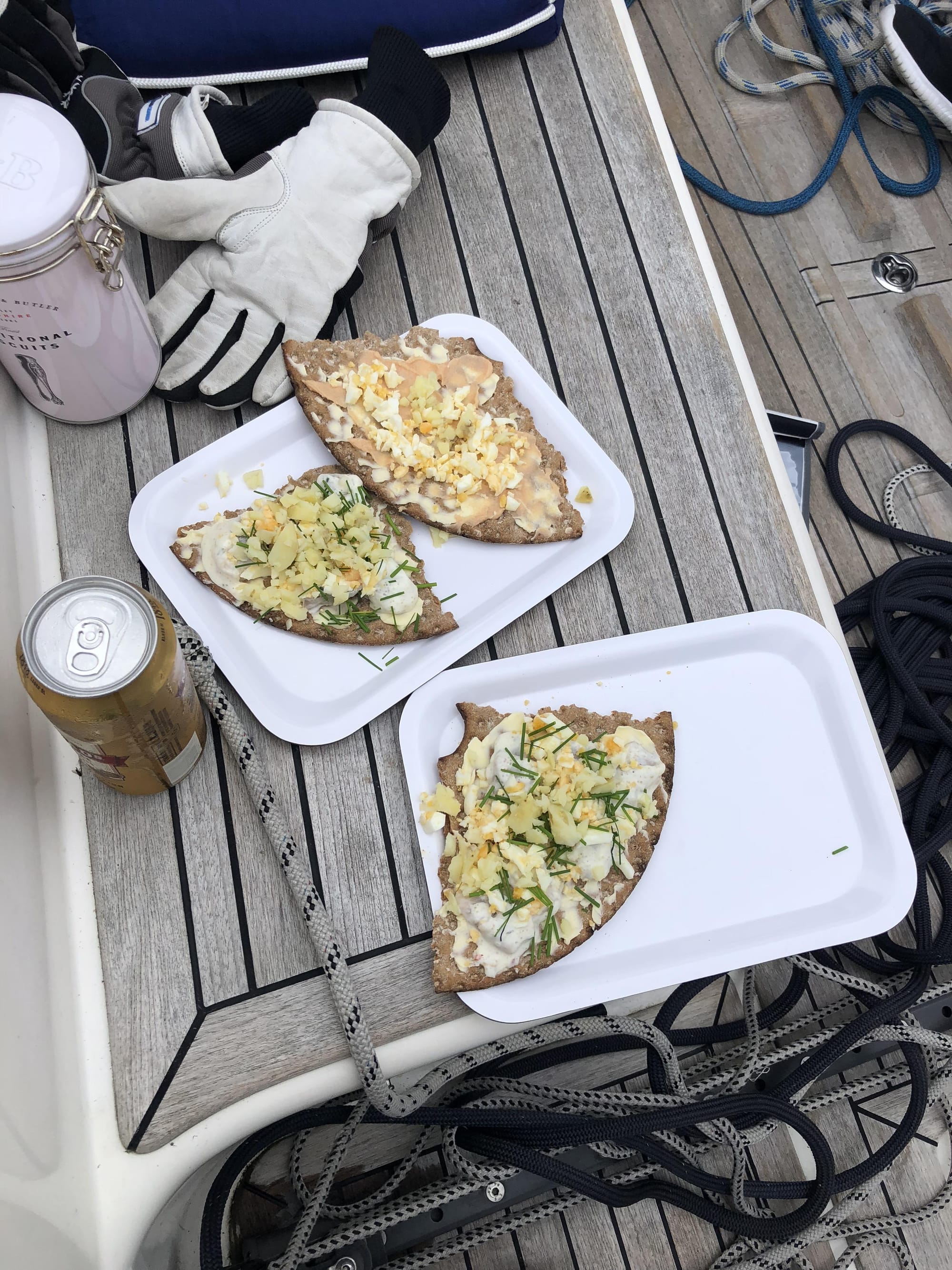 Vaknar till moln och lätt duggregn, men bra vindar för seglats över Östersjön, tyvärr ganska vågigt och jippvarning.