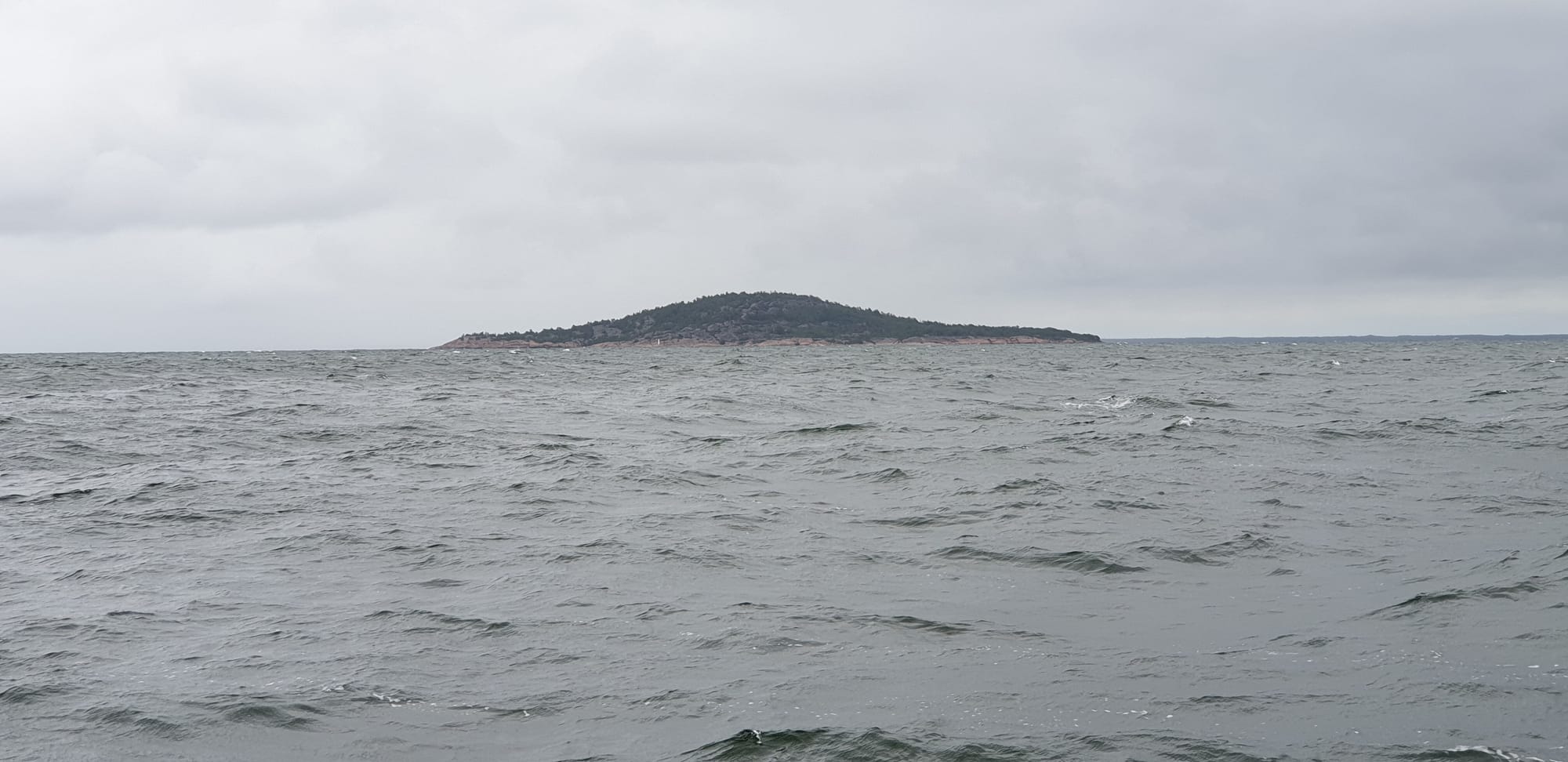 Vi passerade Blå jungfrun som denna gång såg lite grå ut.