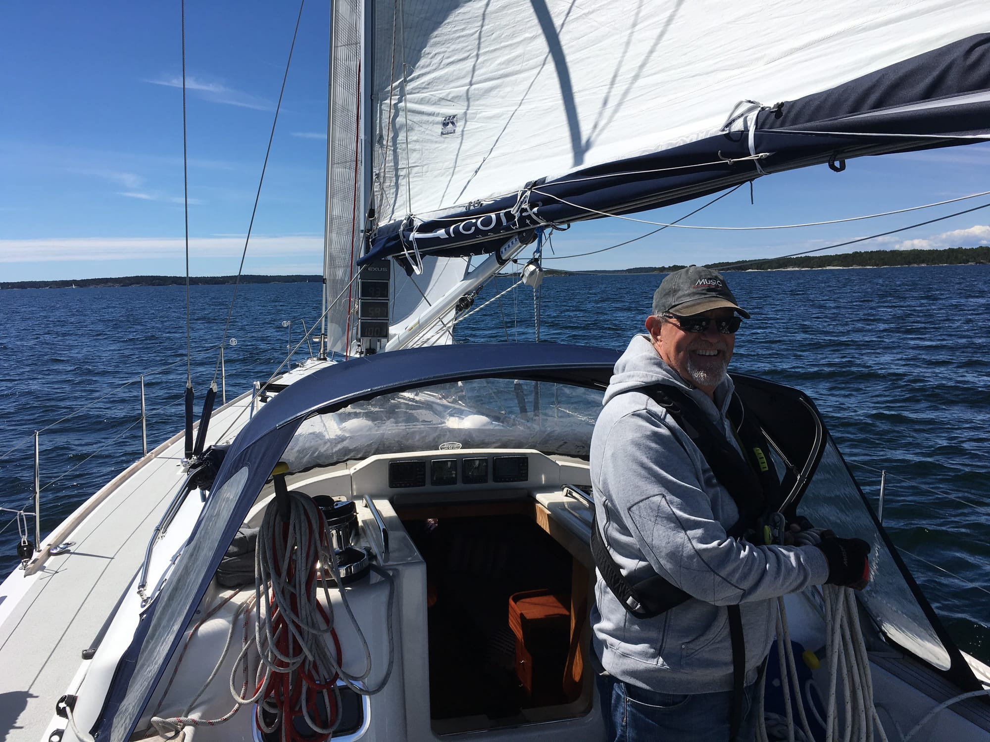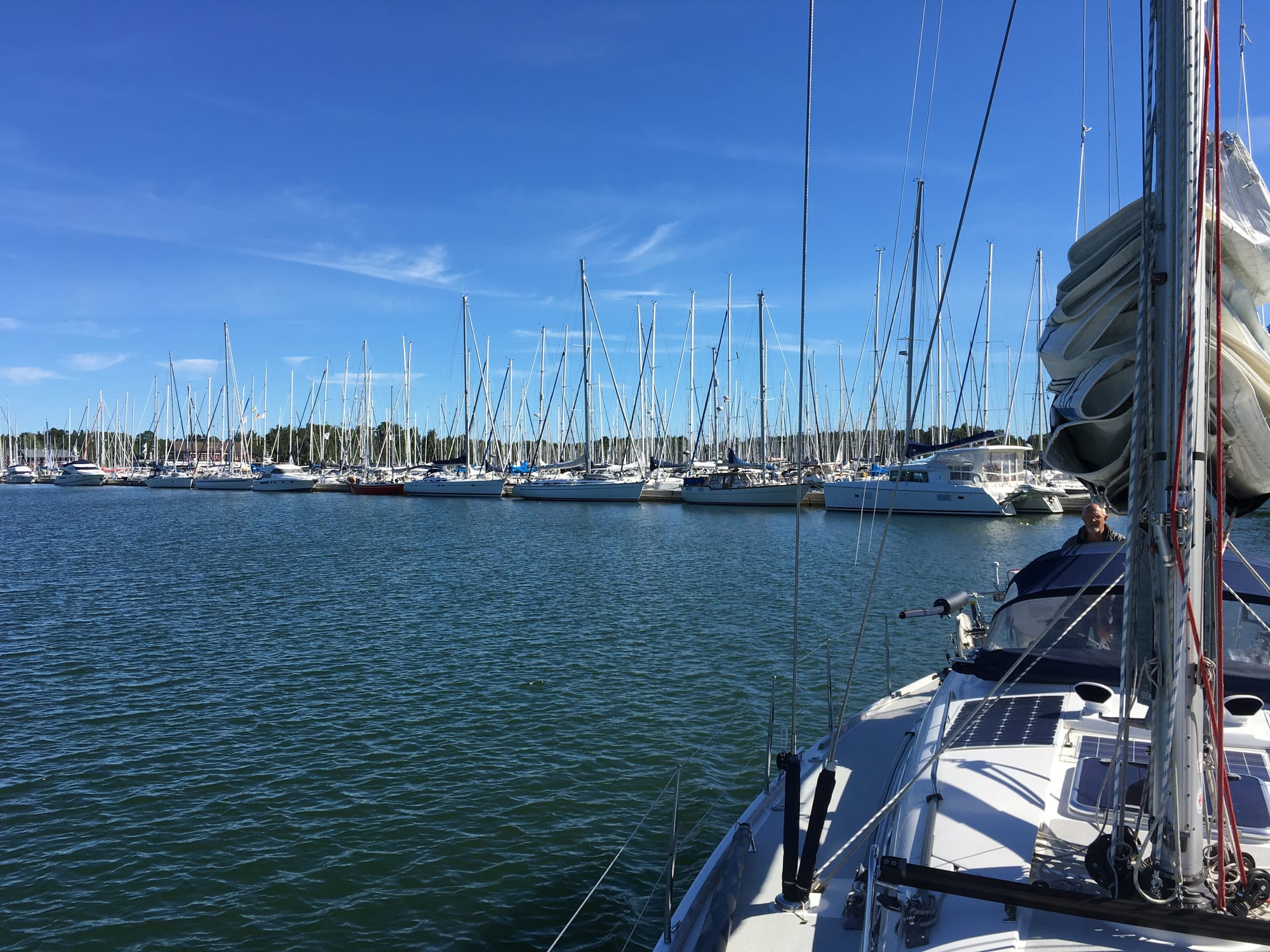 Onsdagen den 28 kl 9 kastade vi loss från bryggan på Bullandö för att starta årets seglats. Besättningen bestod av Eva och Björn Forsberg och kaptenen. Vi gick för motor fram till norra Kanholmsfjärden där vi satte segel i lätta vindar. Efter tre timmar hade vi tagit oss runt Djuröbron och kunde betrakta den från andra sidan. Efter 8 timmar i solsken nådde vi målet för dagen som var Nynäshamn. Vi hade seglat 57 distans med ett snitt på 7,1 knop. Inte dåligt. Belöningen köpte vi på Rökeriet.
