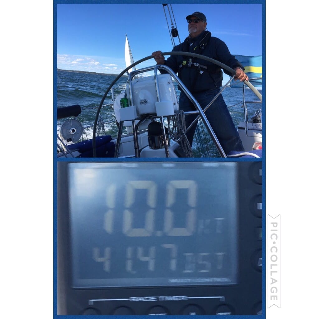 Start från Nynäs kl 9. Idag blåser det och det skall öka under dagen. Vi satte segel utanför Nynäs Havsbad men det blev bara storsegel med ett rev. Något som vi behöll under hela dagen. Det blev en riktigt häftig segling som avslutades med att korsa Bråviken med vindar upp till 15 ms och vågor stora som hus. Det blev 60 distans med ett snitt på 7,9 knop. Svårslaget.