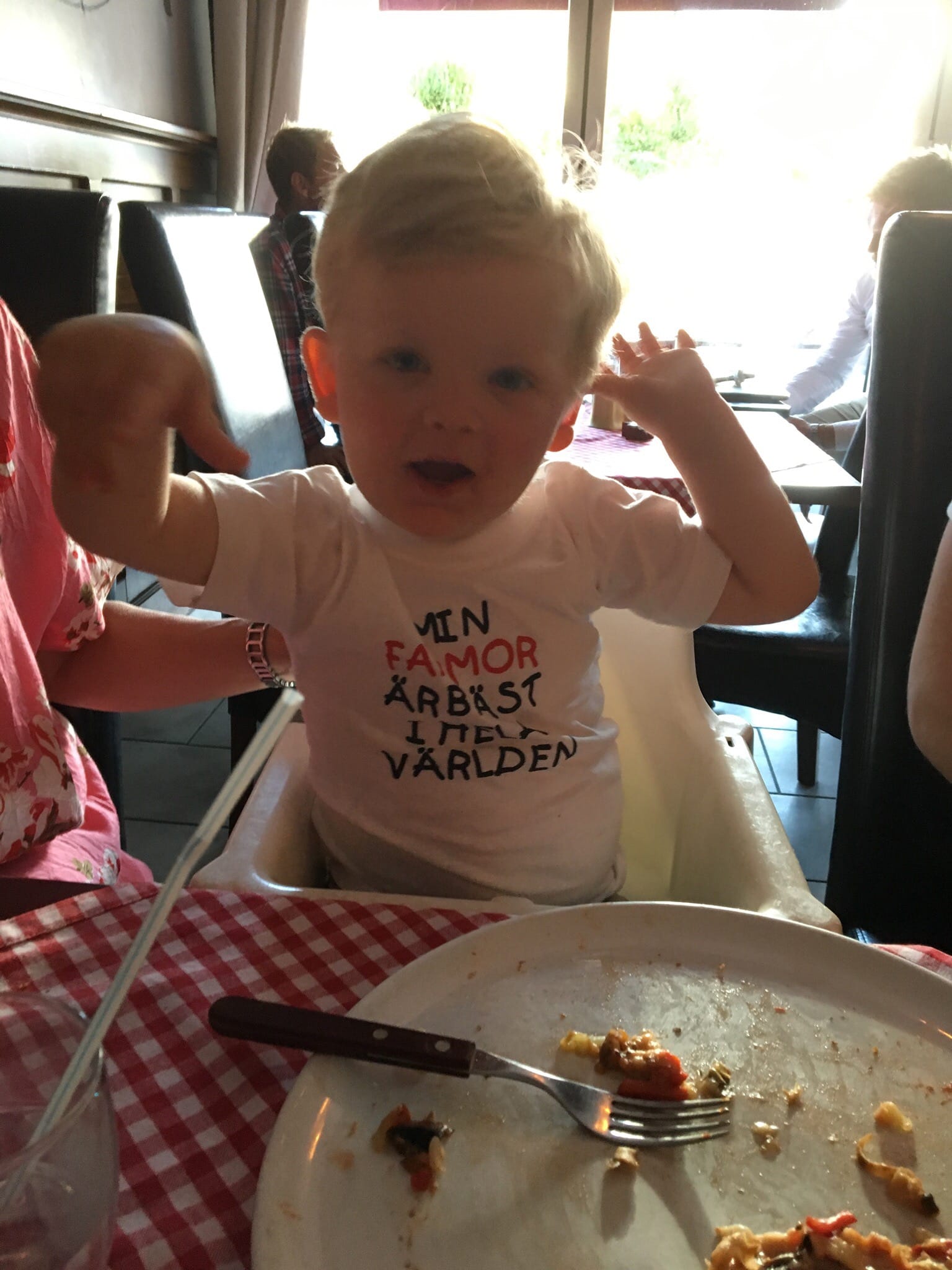 Väl framme i Vänersborg kändes det lagom att promenixa upp till den lokala pizzerian för middag och Bosse fick sin första köpepizza ????