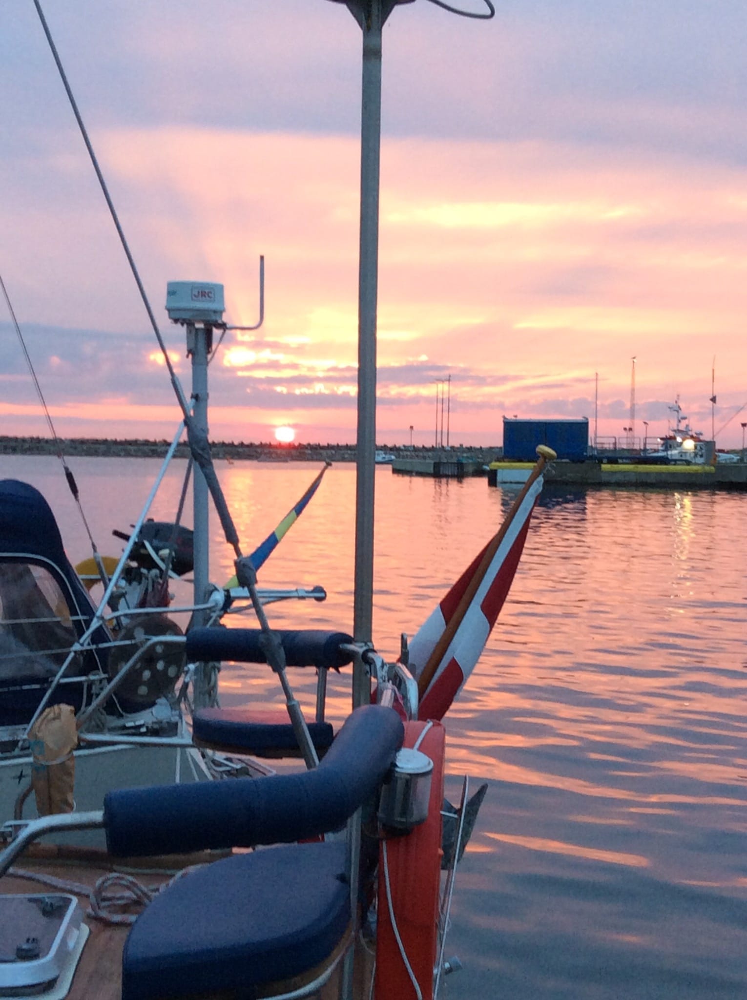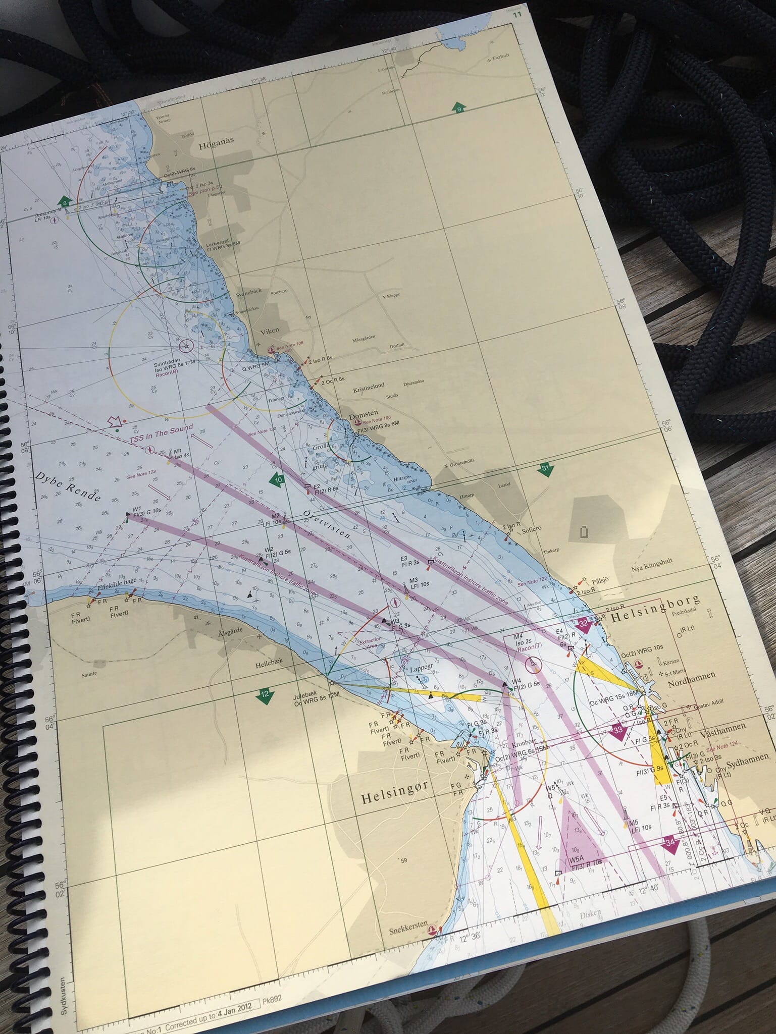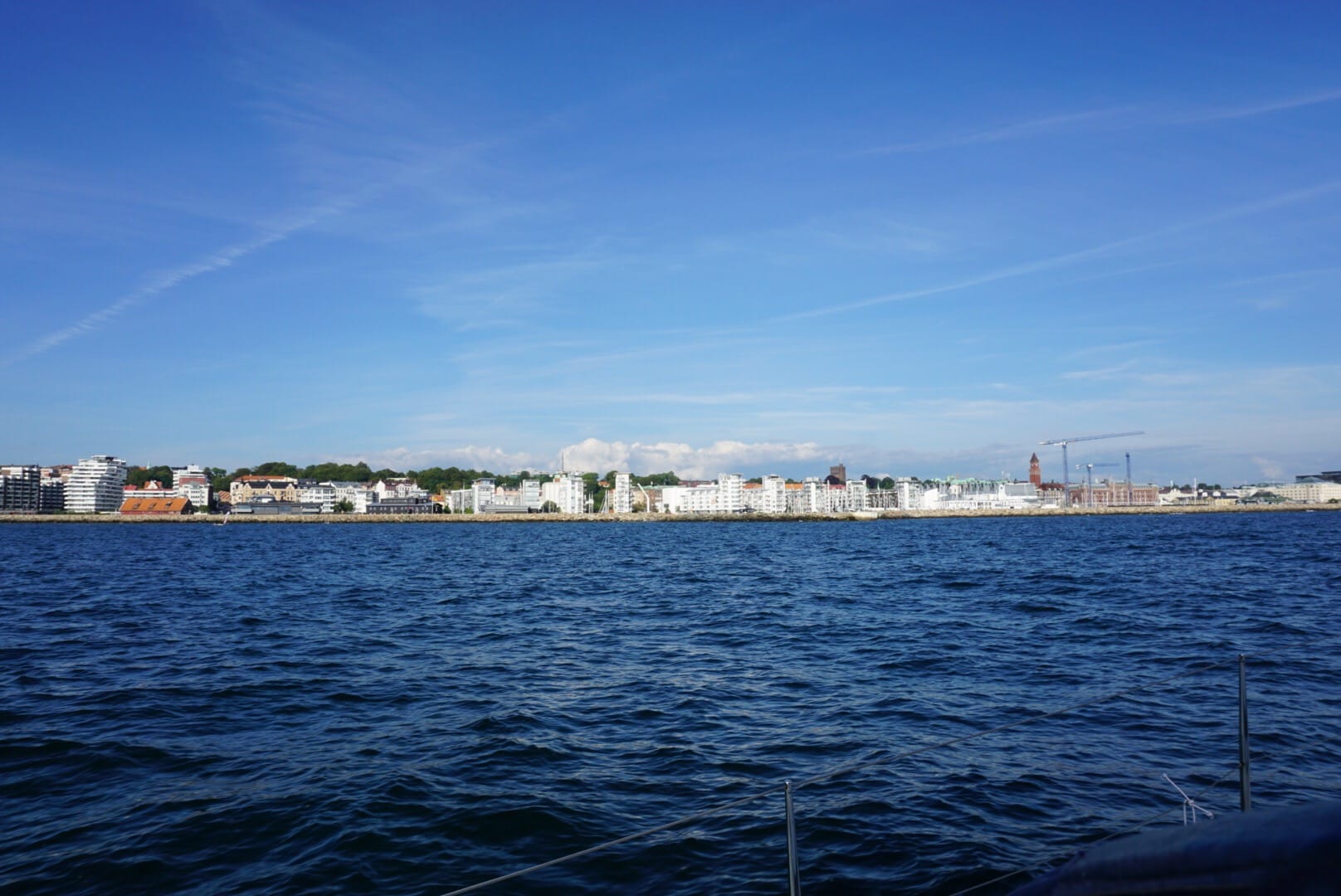 Tidig avgång från Anholt för en lång segling mot Helsingborg. Beräknad tid ca 9 timmar. Varierat väder sol/moln men ganska varmt, vind ca 6-8 ms.
