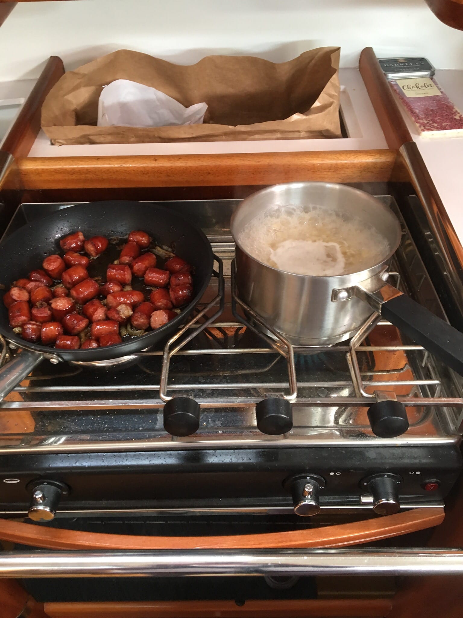 Idag var det inte så mycket vågor som vid tidigare seglingar så det blev faktiskt lagad mat till lunch ????????