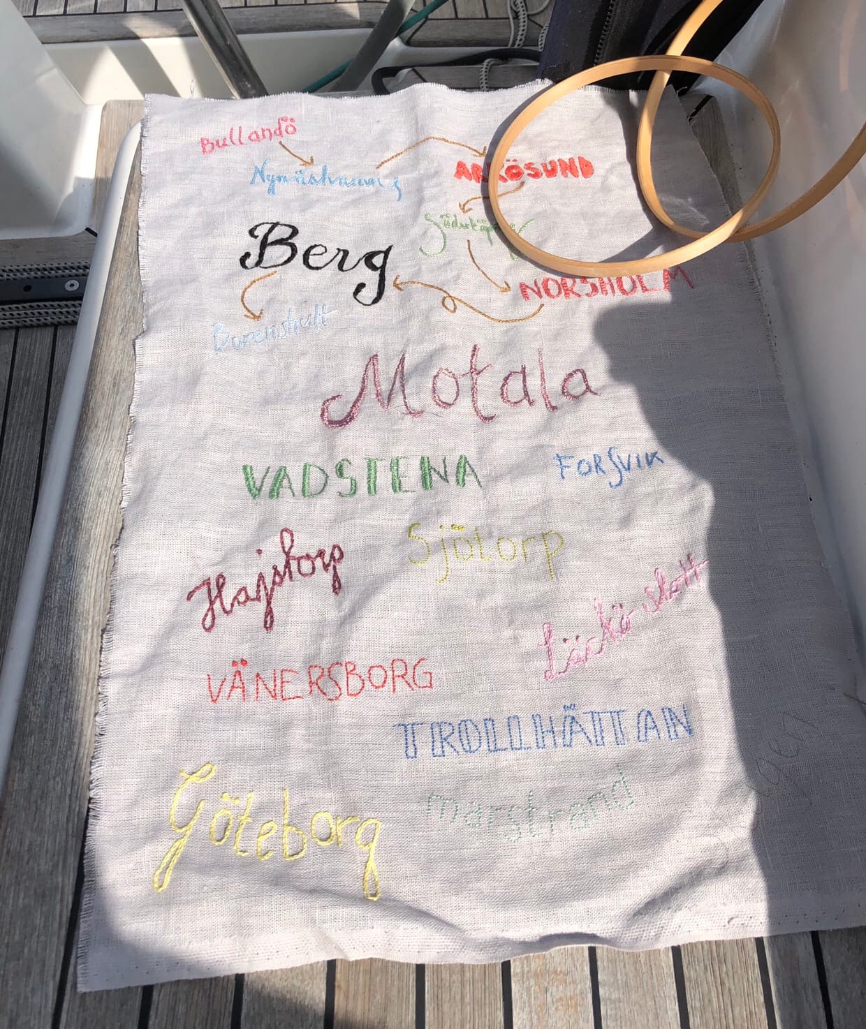 Jag broderade vidare på min tavla som innehåller alla orter vi var i på förra sommarens Göta kanalresa. Och lyssnade på en otroligt tänkvärd bok, rekommenderas! Vi kan påverka vårt mående så mycket genom vår kost.