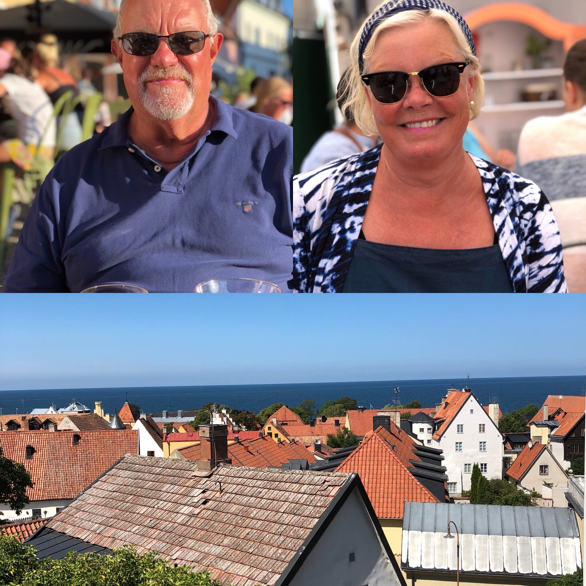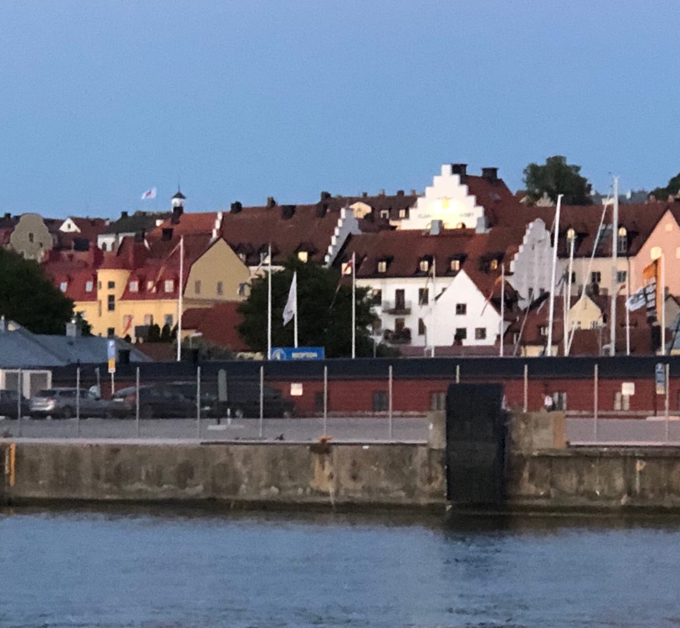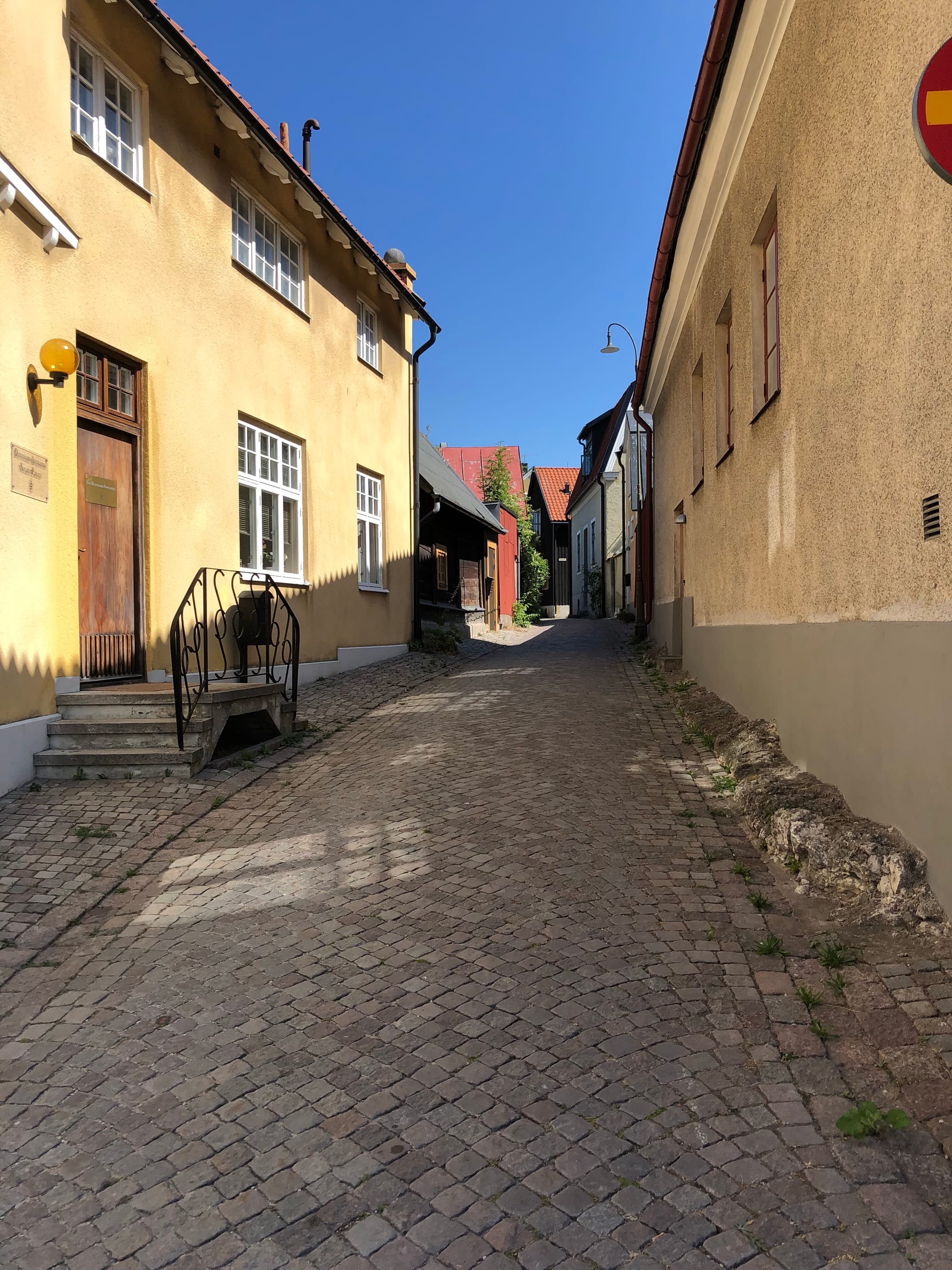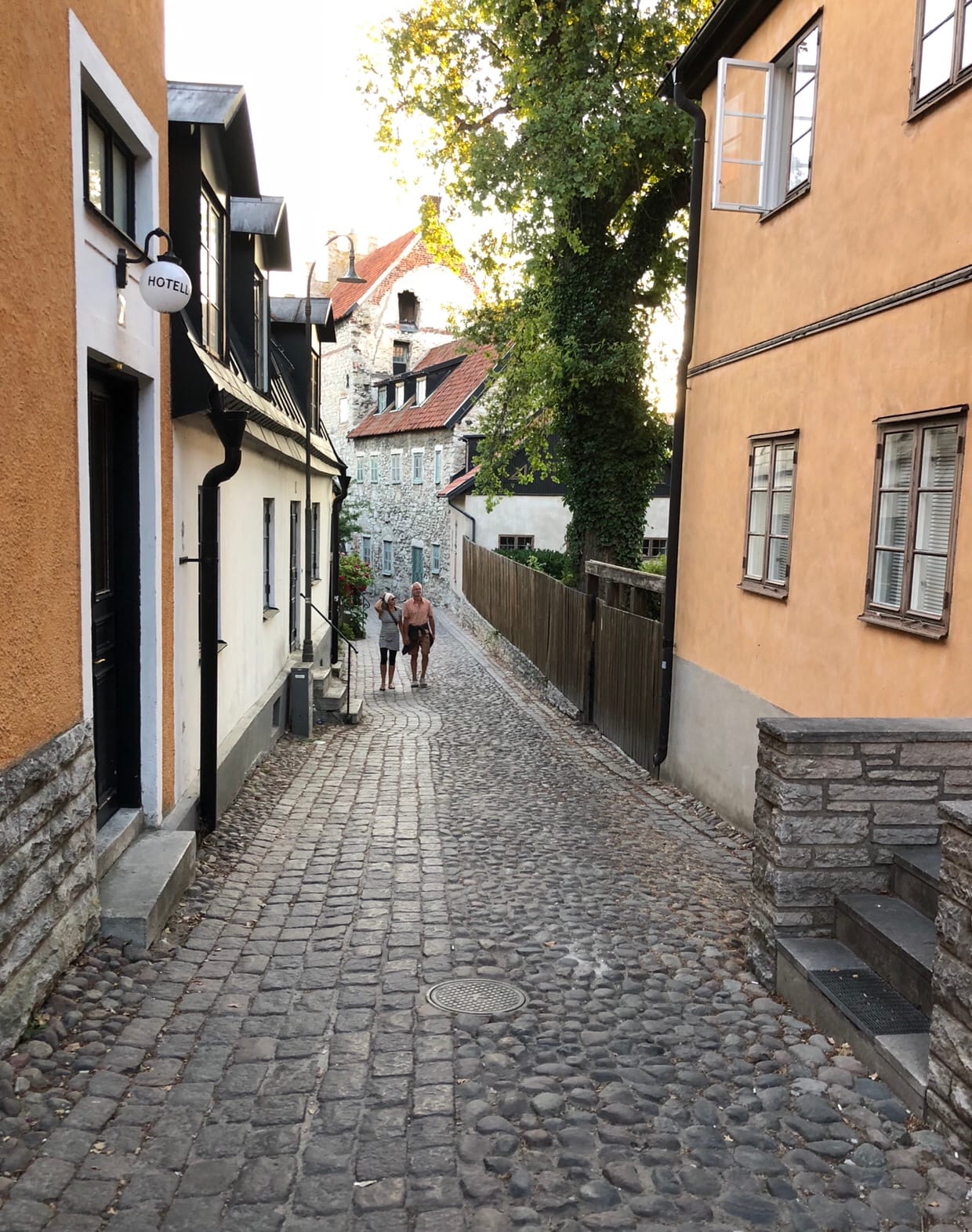 Vi bestämmer oss för att stanna en dag i Visby och beger oss ut på vandring i de vindlande och backiga gränderna. Här är verkligen vackert.