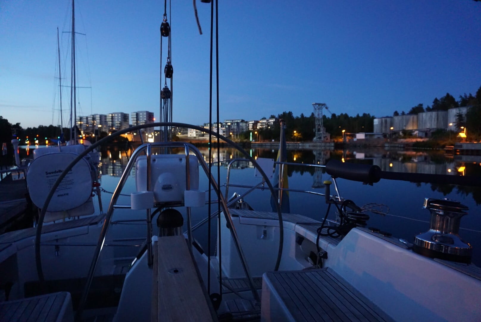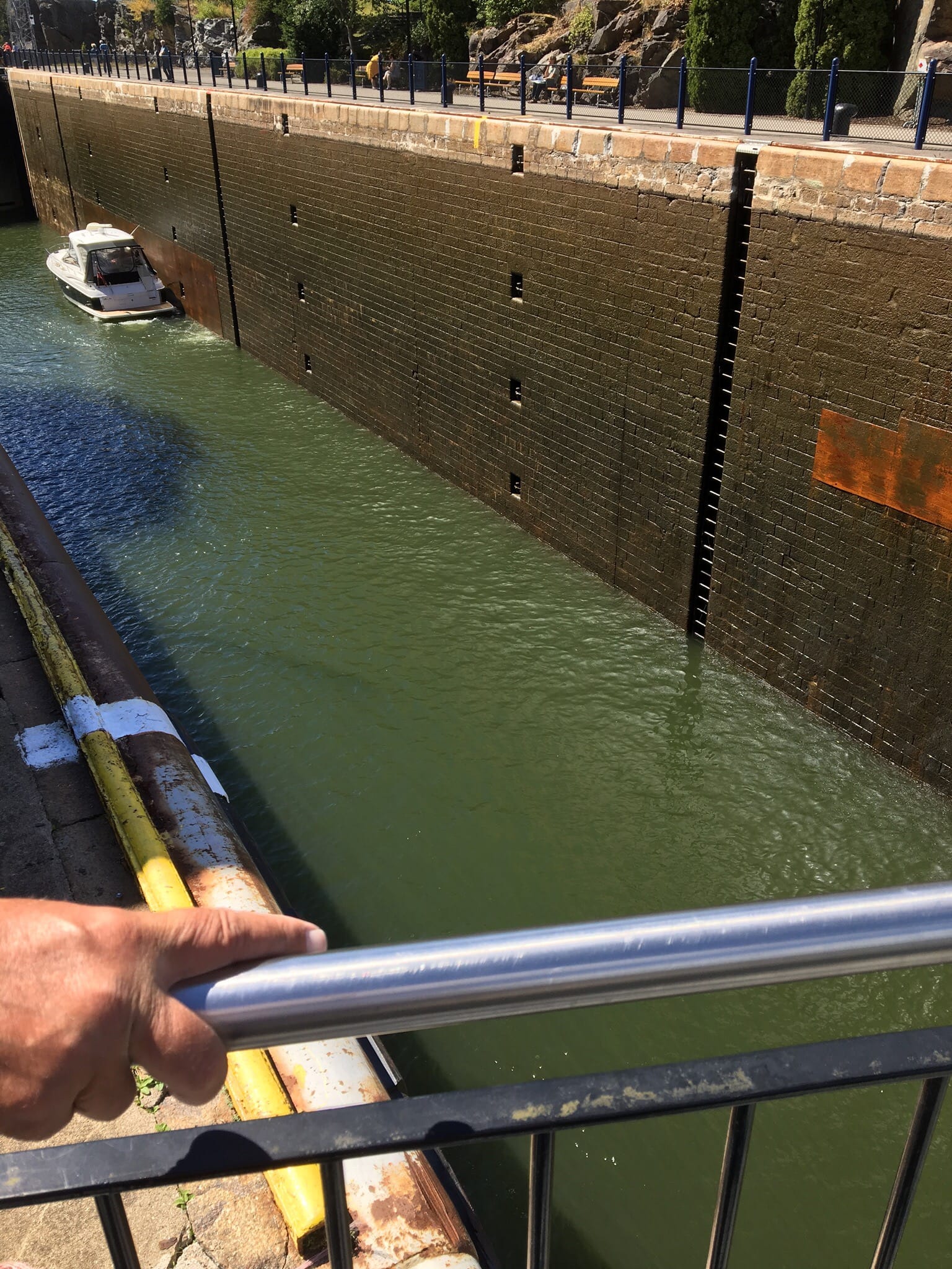 Vi drog vidare mot Trollhättan, via några broöppningar och en sluss.