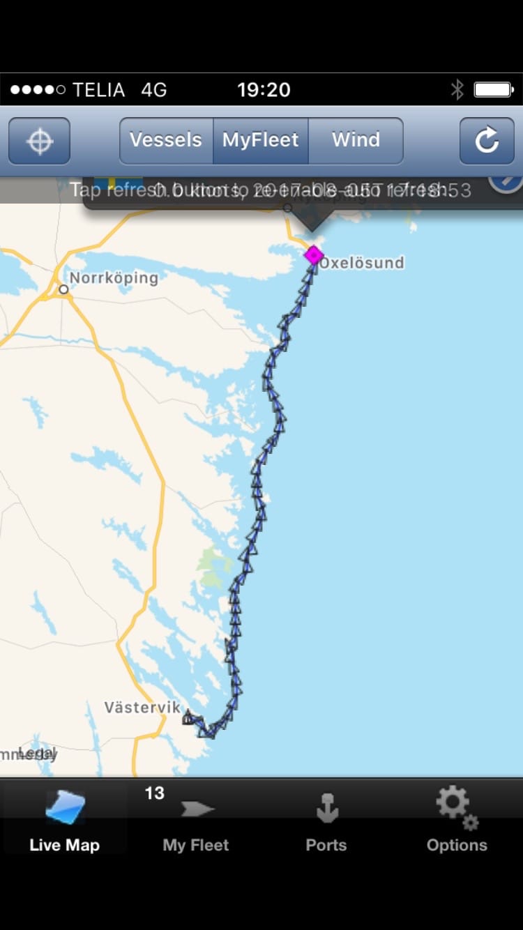 Vi hade bra vindar så vi fortsatte över Bråviken innan vi försiktigt la till i Oxelösund.